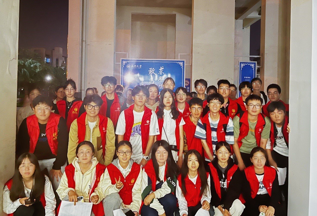 团学干事们准时在步青学区学生事务中心门口集合完毕。由生活心理部部长介绍了本次活动的要求和内容,分为寝室检查和宣传活动。干事随后按小组领取了相关服装和评分表,开展了本次工作。