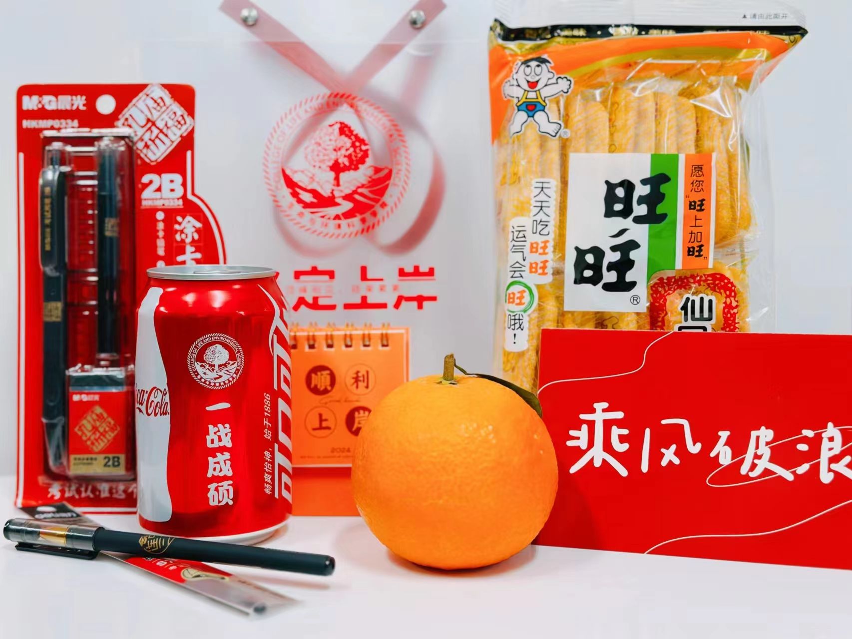 活动尾声,在为考研学子加油打气的同时,老师们还暖心地为大家发放了学院特别定制的“考研加油大礼包”。有寓意“信”心百倍的手写明信片、妙“笔”生花的涂卡笔及中性笔、心想事“橙”的鲜橙、百事“可乐”的定制可乐、好运兴“旺” 的旺旺仙贝、顺利“上岸”的定制台历……考研大礼包带给同学们满满惊喜。“当我们打开礼包时,各种祝福语和小礼物让我们感受到学院对我们的鼓励与期待,让我们备受鼓舞,动力满满。”同学们纷纷如是表示。