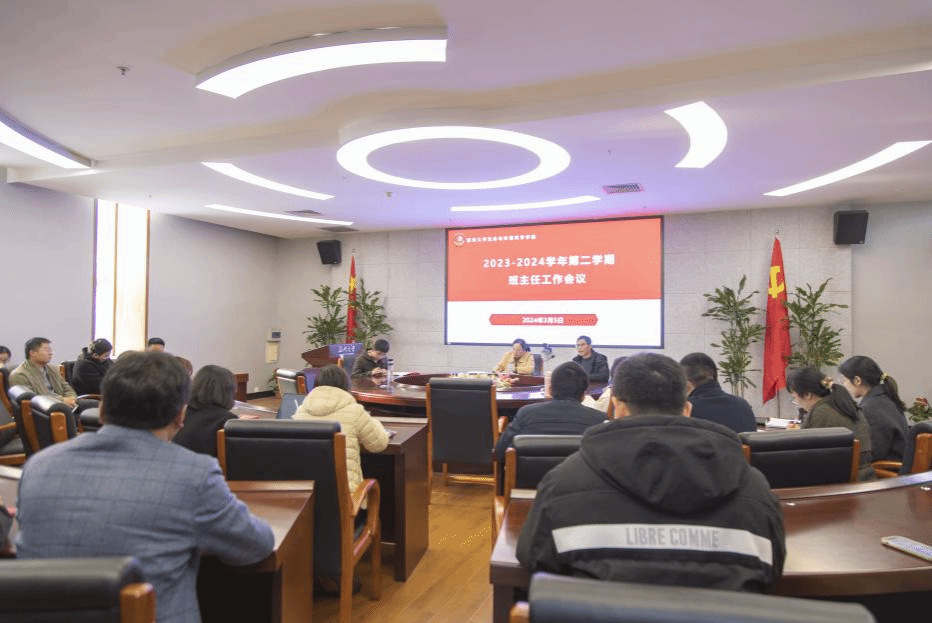 3月5日下午,bat365官网登录入口在岩松堂展示厅召开2023-2024第二学期班主任工作会议。学院党委书记姜海燕、党委副书记赵崇峰、学工办全体辅导员、全体班主任参加会议。会议由党委副书记赵崇峰主持。