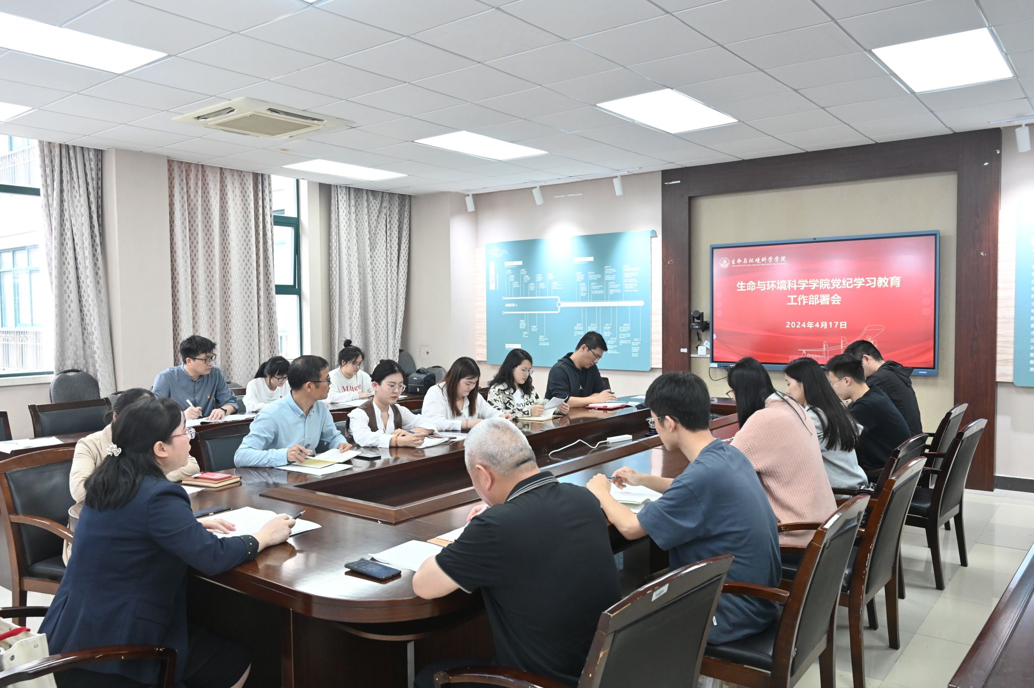 4月17日下午,为深入学习贯彻习近平总书记关于党纪学习教育的重要讲话和重要指示精神,落实学校党委党纪学习教育工作部署会工作要求,bat365官网登录入口党委于10B204会议室召开党纪学习教育工作部署会。生命与环境科学党委书记姜海燕主持会议,学院党委委员、领导班子、专职组织员、师生党支部书记和支委参加会议。