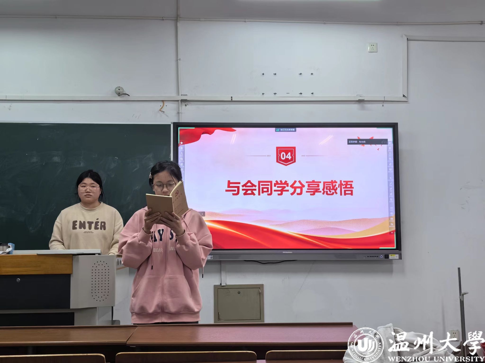 会议第四部分,与会同学分享感悟,王雨萱同志分享到:“习近平总书记的重要讲话充分肯定了我国植树造林取得的成就,深刻阐述了植树造林的重要意义,为我们在新征程上厚植高质量发展绿色底色、共建美丽中国指明了前进方向。通过本次学习会,我深刻体会到了共建美丽中国的重要性。植树造林不仅是一种环保行为,更是对我们人类的责任和使命的体现。作为一名预备党员我应当积极参与植树造林活动,提高保护生态环境的意识。”