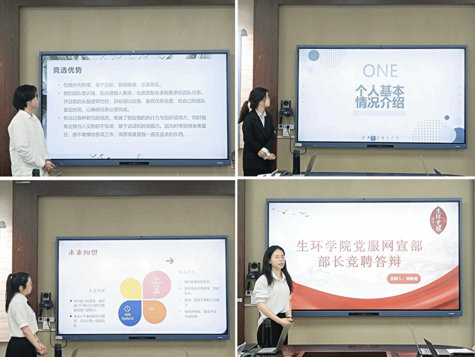 工作总结大会结束后,随即开展了党服2024-2025学年换届大会。15位候选人依次从自我介绍、工作情况、职位理解和工作设想等方面进行竞选发言,中心主任及各部门部长针对发言内容和未来工作中可能出现的问题进行提问。