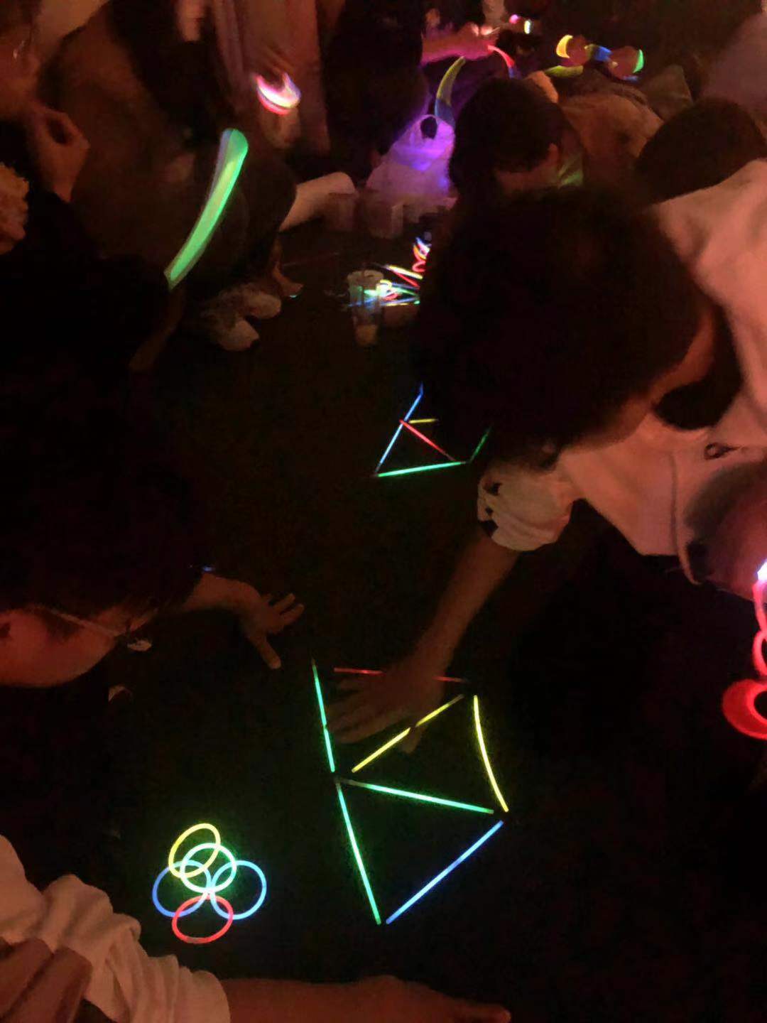 18:30左右,所有参赛人员在南校操场集合签到,完成组队并分发手环,贴上队名,由主持人介绍活动规则和注意事项后,活动正式开始。夜跑比赛要求参赛者带上手环经过规定的打卡点:教育学院,美术与设计学院,南大门,步青学区华表,南校操场。每个地点将会设置一个关卡,参赛者需要在相应的关卡完成游戏通关,获得荧光手环。在经过所有打卡点并完成挑战后,参赛选手需返回南校操场,以集齐的手环为依据,证明打卡完成。等所有的参赛者集合后,所有的参赛者及工作人员拍照留念,并给获奖者颁发奖状与奖品。虽然此次活动在刚开始遇上小雨天气,但依旧不能阻挡学生们参加的热情,雨停后活动如期举办,同学们遵守规则,有序配合,活动过程所做的小游戏也都充满趣味性。最后活动得以圆满结束。