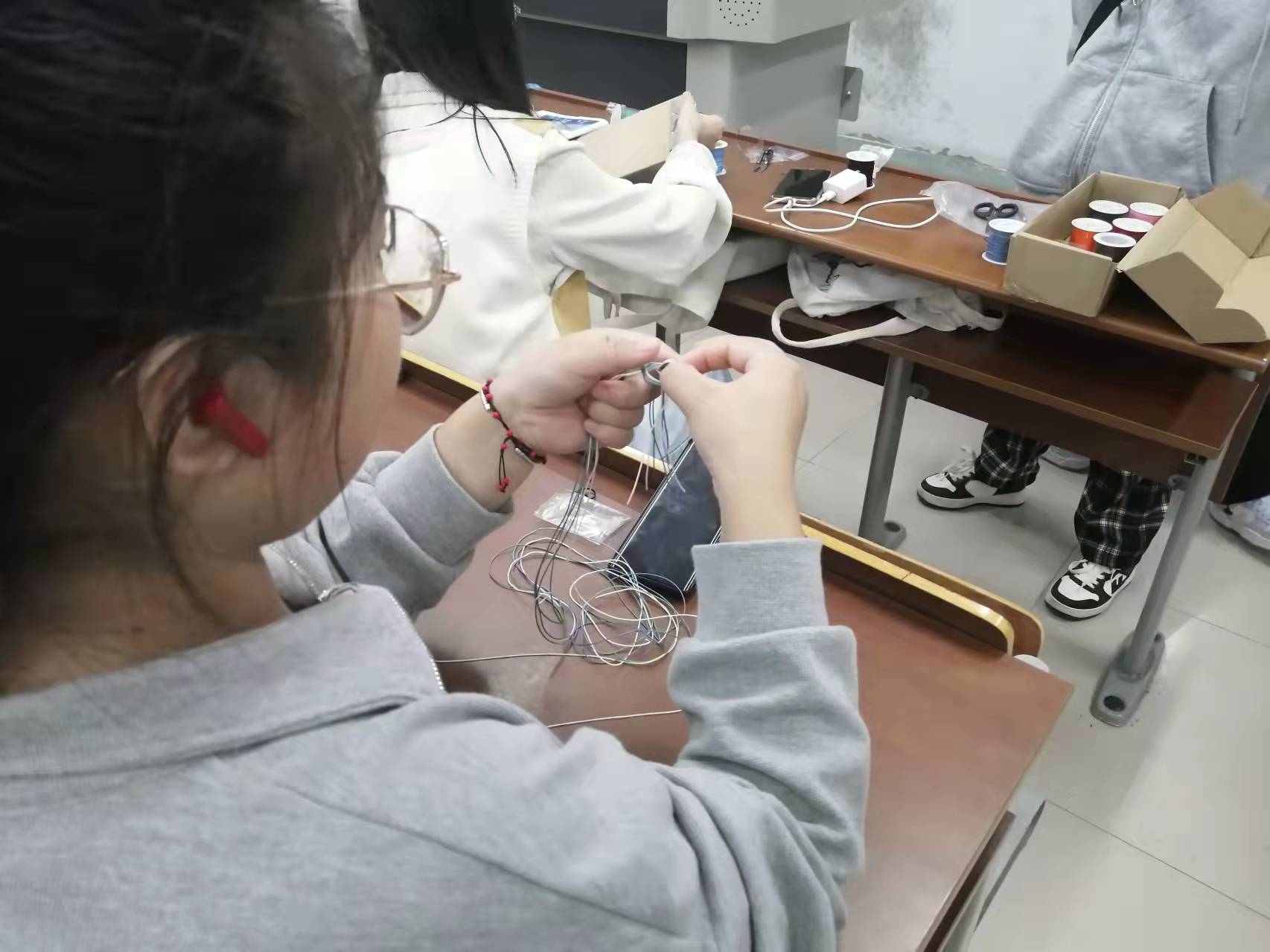 2021年11月28日14:00,欣灵设计协会新学期的第三次社团活动在11 A202教室如期举行。本次活动的主题是制作编绳。编绳的材料简单,主要是各色线和珠子。编绳的制作方法流程也很简易,但是需要较强的耐心去编制。同学们在完成基础款式后,又尝试对编绳的款式制作进行了创新。