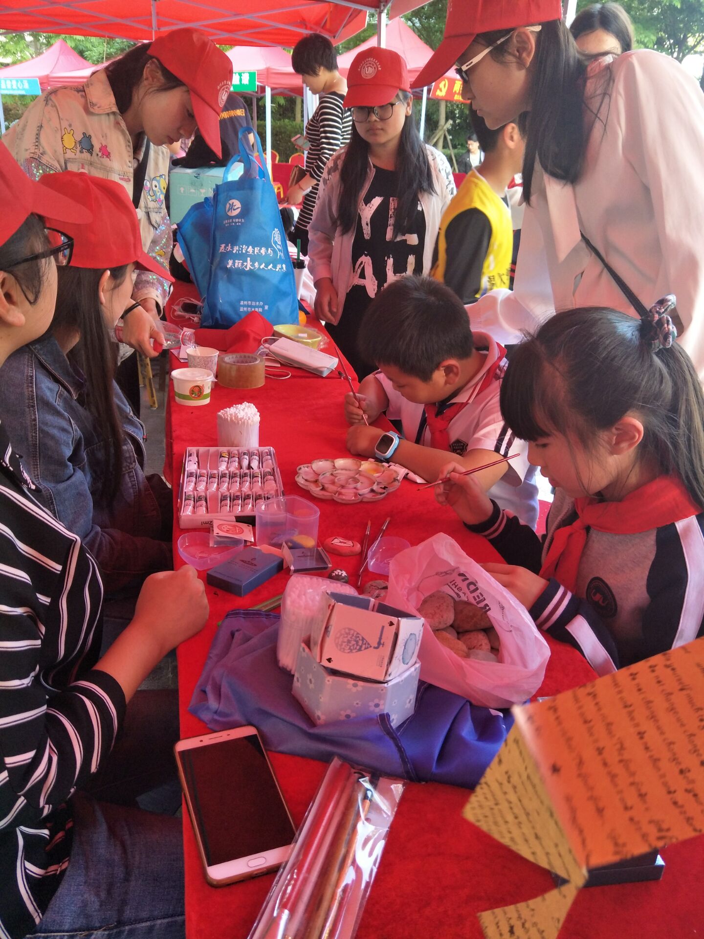 12:50的时候,十五名志愿者在东大门集合完毕,在完成志愿汇签到以后,大家一起步行前往博园社区。13:10左右,到达目的地。由负责人带路进入我们的负责范围。活动开始前来自各个学校、学院的志愿者都在签名墙上庄重的签下了自己的名字。活动开始后,首先是街区的领导发言,阐述了本次活动举办的意义和目的,然后由志愿者代表宣读了倡议书,紧接着便开始了社区负责人与学院、爱心企业的负责人签约,学院和爱心企业的负责人授牌给社区,社区则将志愿者队旗授与各学院、爱心企业,最后区领导宣布活动正式启动,我们也开始了志愿活动。我们将十五名志愿者分为了五组,分别教小孩子们画石画、叠纸盒、做飞机,做小汽车、折纸灯笼。看到小孩子们露出开心的笑容,志愿者们也十分高兴。