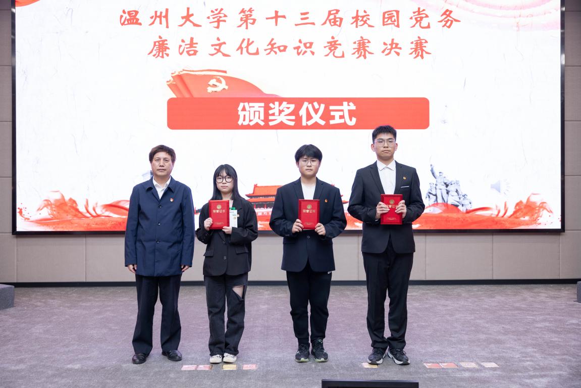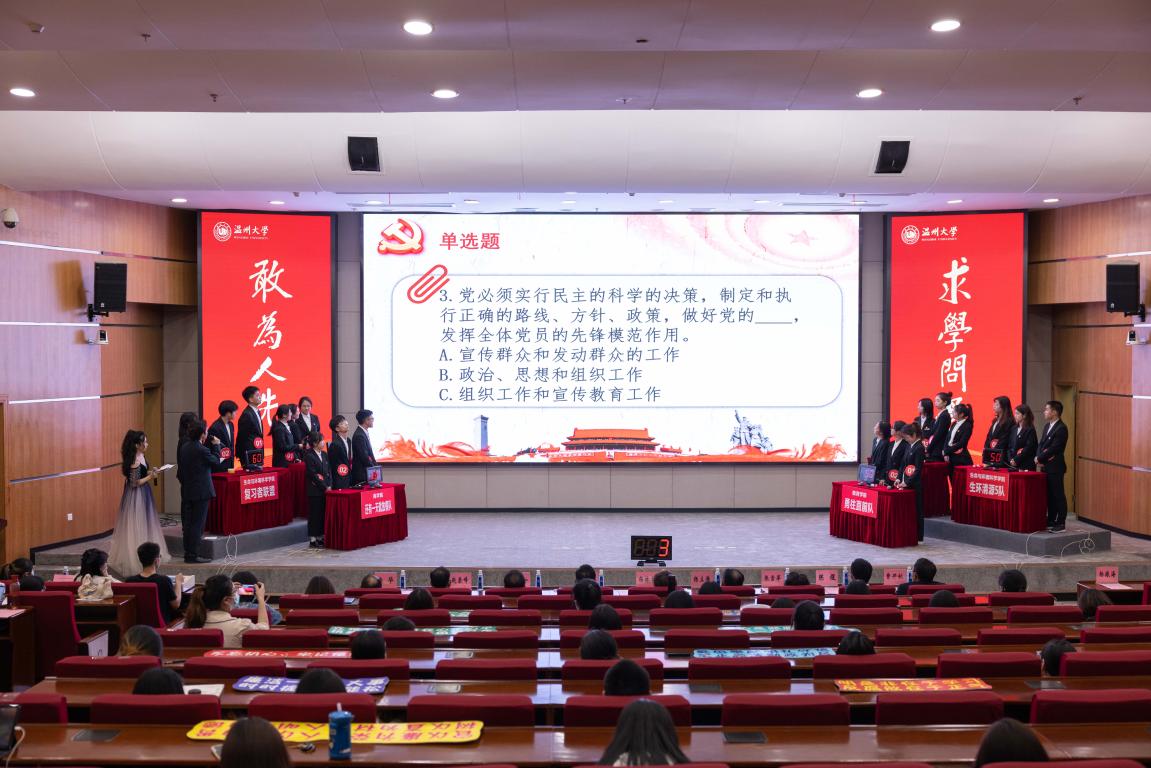 为持续推动党史学习教育走深走实,扎实推进廉洁教育和廉洁文化宣传,营造风清气正的校园廉洁文化氛围,助推“清廉温大”建设,5月4日下午,由温州大学纪律检查委员会主办、教师教育学院承办的“致敬百年奋斗路,谱写廉洁新乐章”第十三届校园党务廉洁文化知识竞赛决赛在育英图书馆二楼报告厅举行。出席本次大赛的领导有校纪委书记杨林书,校纪委副书记杨立淮,教育学院党委书记何毅,校纪检监察室副主任张雪萍,校党委组织部档案科科长陈煜以及各学院党委副书记。现场还有各参赛学院的党员和入党积极分子等师生代表观赛。