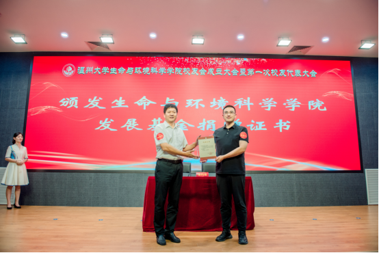 大会审议通过了《温州大学生命与环境科学学院校友会章程》和生命与环境科学学院校友会第一届理事会成员建议名单。校党委副书记庄兴忠为校友会授牌,并为理事会顾问、会长、副会长、理事、秘书长和副秘书长等颁发聘书。